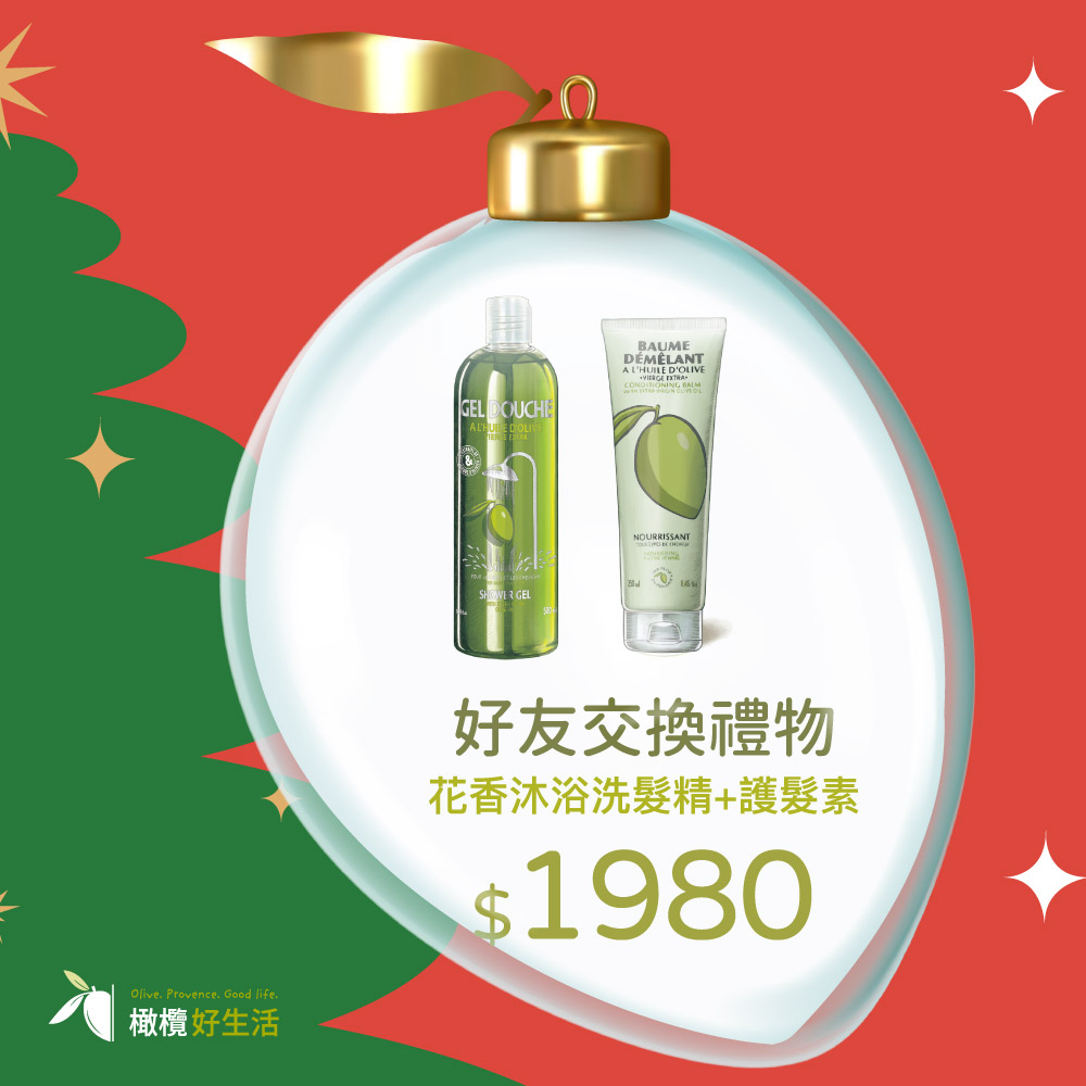好友交換禮物推薦組,精選沐浴洗髮精與護髮素雙品組合,適合日常清潔與髮絲保養使用。香氣自然、洗後舒適,是兼具質感與實用性的交換禮物選擇。原價 $2460,現享優惠 $1980。